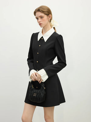 The CELÉSTE A-Line Button Dress is a timeless piece designed for effortless elegance and everyday refinement. With its clean A-line silhouette, this dress creates a flattering shape while maintaining comfort and structure. The contrast neckline with delicate detailing adds a classic touch, while the button-front design elevates the look with subtle sophistication. Finished with long sleeves and a knee-length cut, CELÉSTE transitions seamlessly from daytime wear to polished occasions. Crafted from a smooth fabric with slight stretch, it offers a comfortable fit without compromising on style.