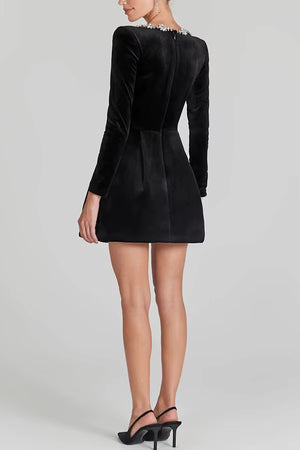 The LYNÉSSA Diamond-Trim Square Neck Mini Dress is the perfect blend of elegance and modern glamour. Designed with a flattering square neckline framed by sparkling diamond-style embellishments, this dress delivers a luxurious look for any special occasion.