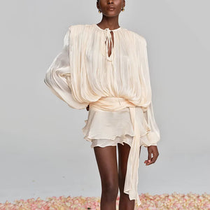 VALÉRIA Ruched Lantern-Sleeve Mini Dress