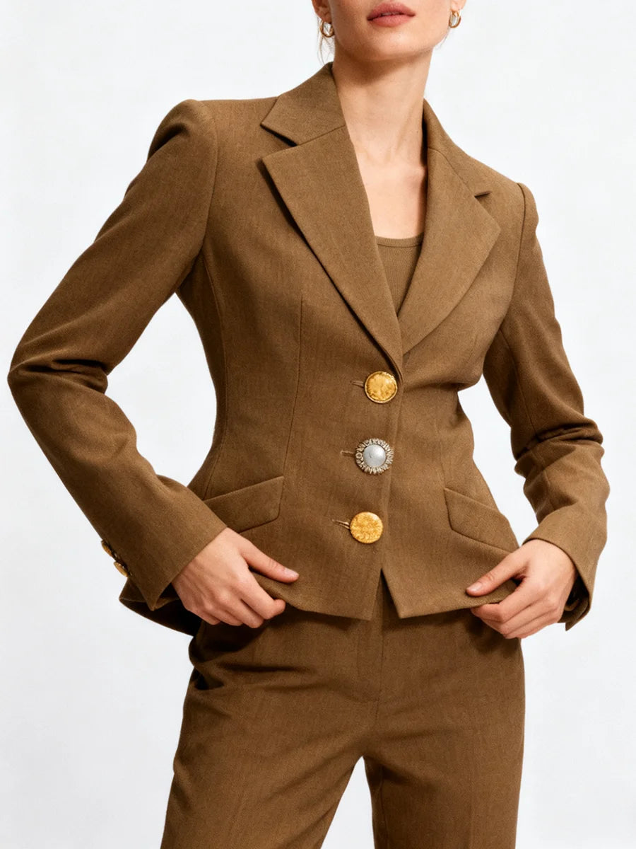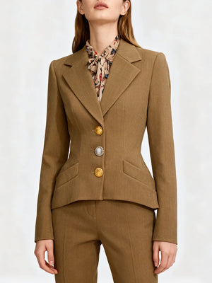 • Single-breasted tailored design with a structured silhouette