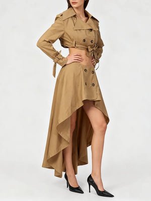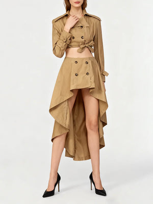 The ALVYRA Lace-Up Two-Piece Set blends modern femininity with elevated sophistication. Featuring a structured lapel top with lace-up detailing and a high-waist irregular skirt, this chic ensemble delivers a refined silhouette with contemporary edge. Designed for the woman who values polished style and standout elegance, it transitions effortlessly from daytime refinement to evening allure.